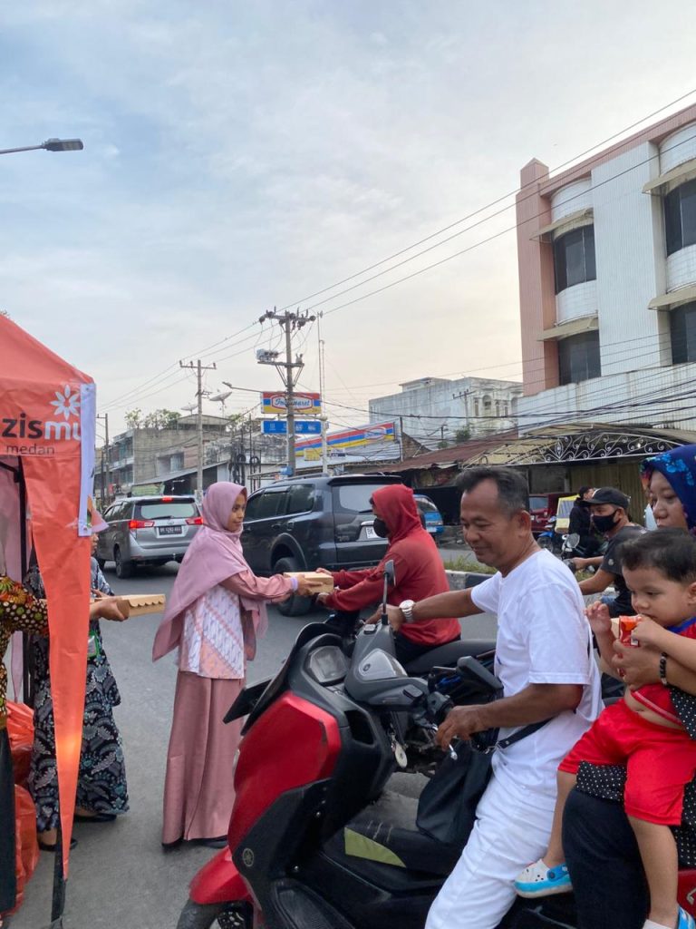 Pembagian takjil dilakukan langsung oleh para relawan dan amil LAZISMU Kota Medan yang turun ke lapangan untuk membagikan makanan berbuka kepada para pengguna jalan, pekerja, pengendara, serta masyarakat sekitar yang melintas di lokasi tersebut. Kegiatan ini disambut dengan antusias oleh masyarakat yang menerima takjil, terutama mereka yang masih beraktivitas di luar rumah saat waktu berbuka puasa semakin dekat.