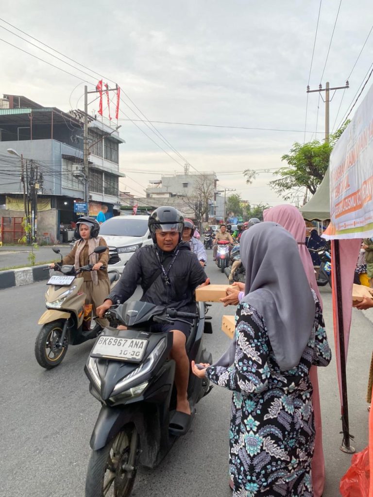 Medan – Dalam rangka menyemarakkan bulan suci Ramadhan 1447 Hijriah, LAZISMU Kota Medan kembali melaksanakan Program Tebar Takjil pada Jumat (6/3/2026). Kegiatan ini menjadi salah satu bentuk kepedulian sosial kepada masyarakat, khususnya bagi mereka yang masih berada di perjalanan menjelang waktu berbuka puasa.