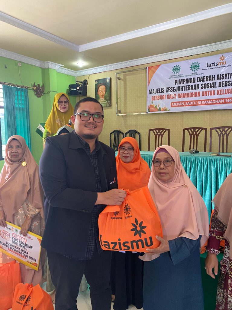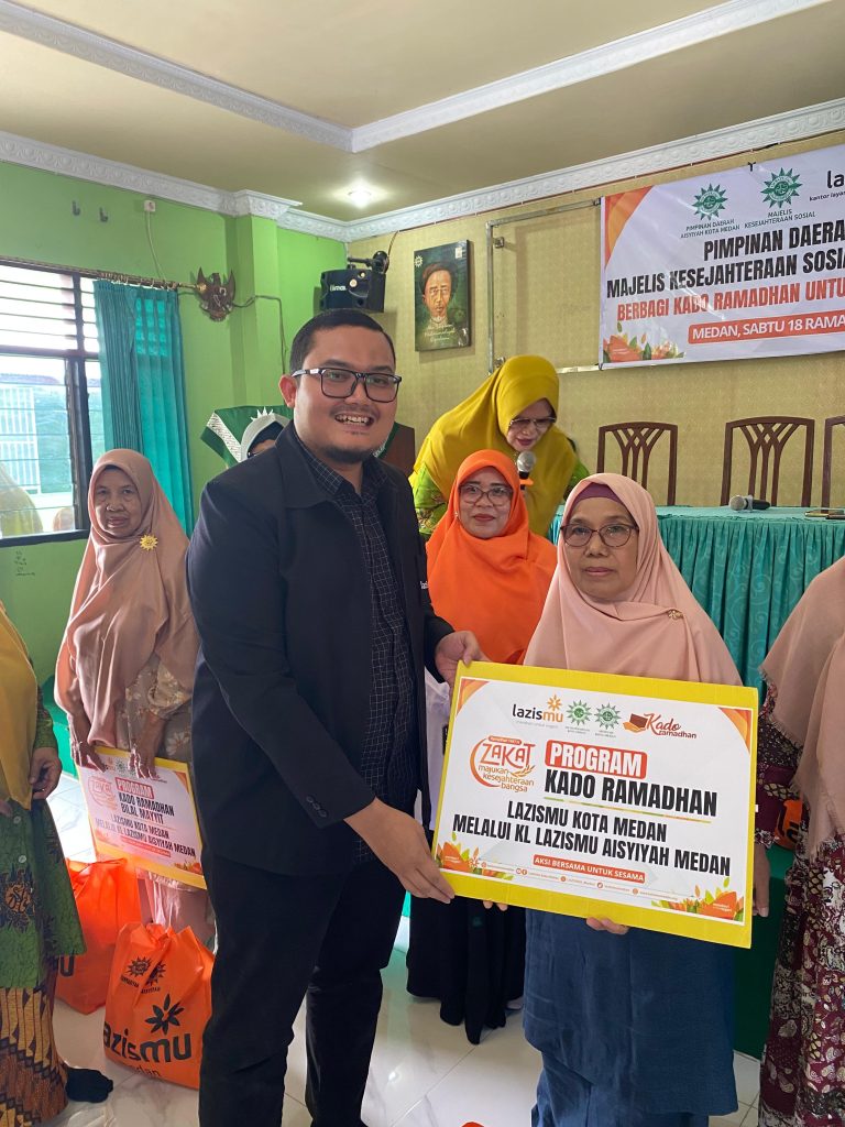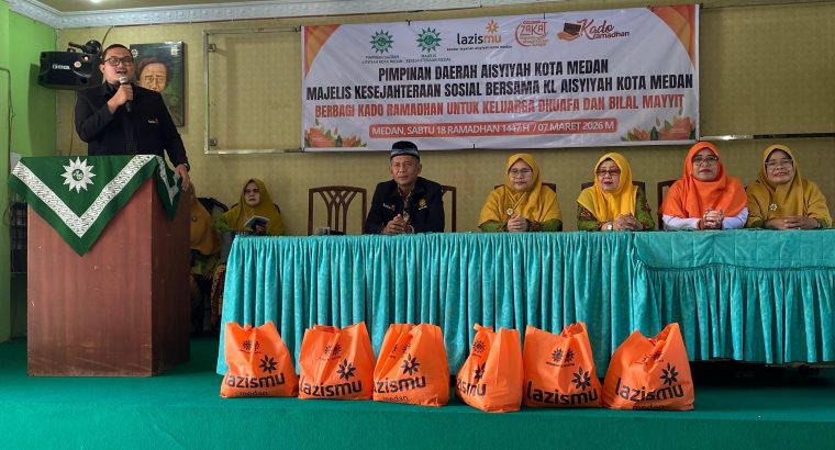 Medan – Dalam rangka menyemarakkan bulan suci Ramadhan 1447 H, LAZISMU Kota Medan melalui KL Lazismu Aisyiyah Medan menyelenggarakan program Kado Ramadhan yang diperuntukkan bagi keluarga dhuafa dan bilal mayyit. Kegiatan ini dilaksanakan pada Sabtu, 7 Maret 2026 di Jl. Santun No. 17, Teladan, Kota Medan, Sumatera Utara.