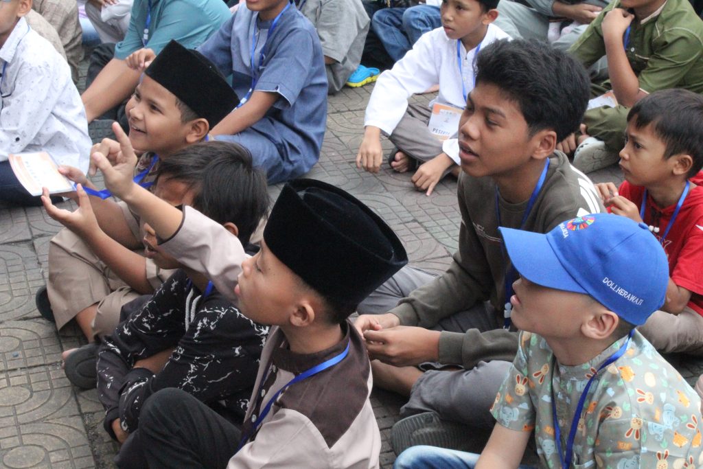 Suasana semakin hidup ketika sesi tanya jawab berlangsung. Anak-anak tampak antusias menjawab berbagai pertanyaan yang diberikan, bahkan beberapa di antaranya berani maju ke depan untuk berinteraksi langsung. Sebagai bentuk apresiasi, panitia juga memberikan hadiah kepada peserta yang aktif, sehingga menambah semangat dan keceriaan dalam kegiatan tersebut.