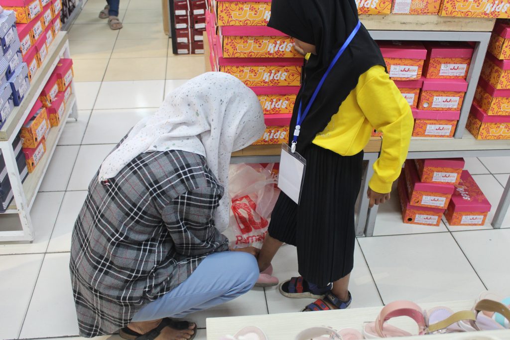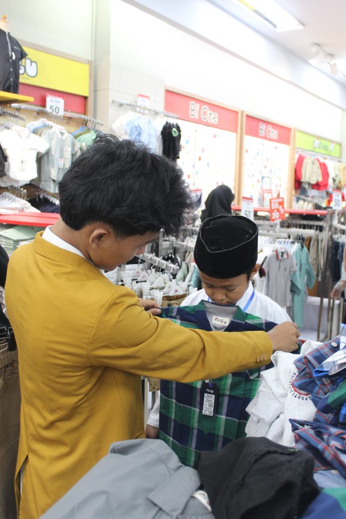 Memasuki acara inti, anak-anak kemudian diajak menuju pusat perbelanjaan untuk mengikuti program belanja baju Lebaran. Dengan penuh kegembiraan, mereka memilih sendiri pakaian yang diinginkan. Momen ini menjadi pengalaman yang sangat berkesan, karena tidak hanya menerima bantuan, tetapi juga merasakan kebahagiaan seperti anak-anak pada umumnya saat menyambut hari raya.