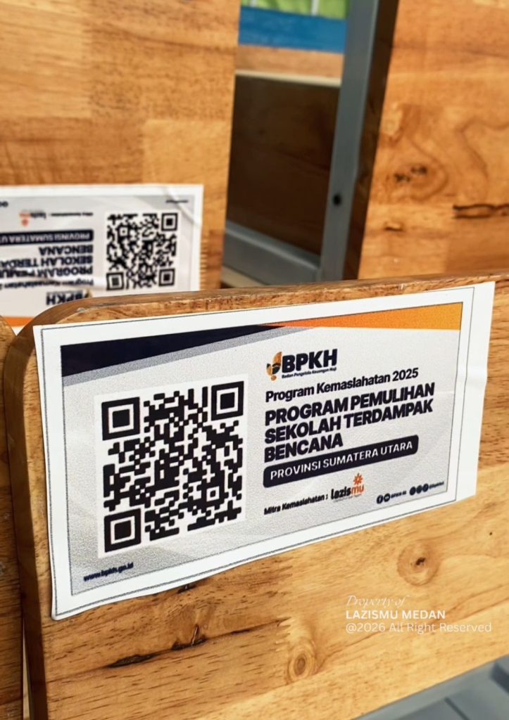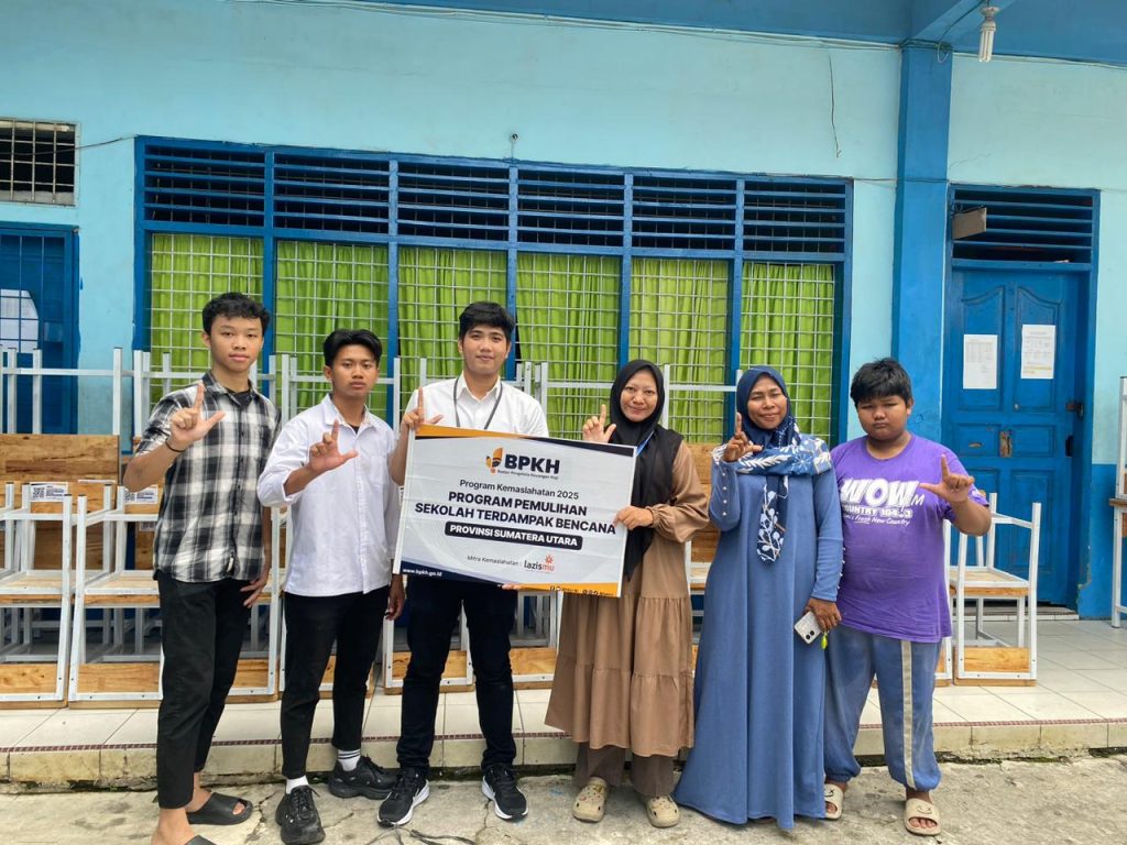 Medan — Badan Pengelola Keuangan Haji Republik Indonesia (BPKH RI) bersama LAZISMU Kota Medan kembali menyalurkan bantuan melalui Program Kemaslahatan dalam bentuk pemulihan sekolah terdampak bencana di Provinsi Sumatera Utara. Penyaluran bantuan dilaksanakan di Sekolah Menengah Pertama Muhammadiyah 48 Medan yang beralamat di Gg. Sekolah No.02, Tegal Sari Mandala I, Kecamatan Medan Denai, Kota Medan, Sumatera Utara.